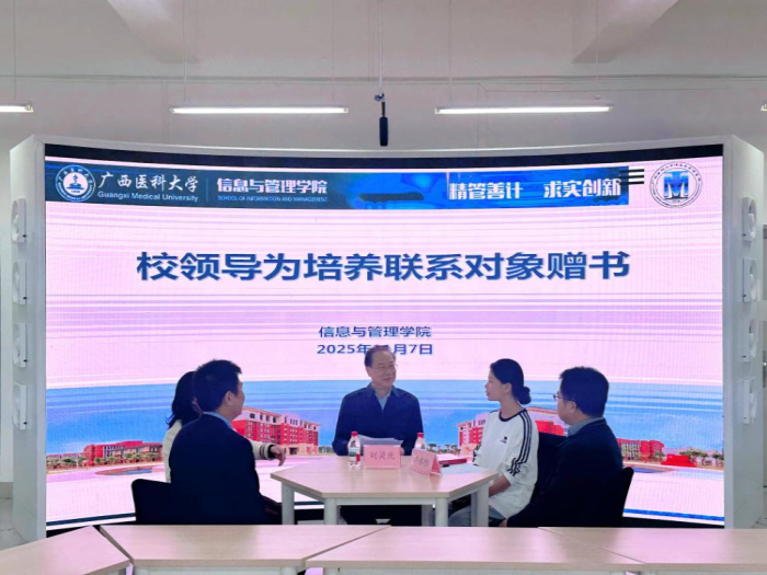 刘灵光副书记首先与培养联系对象、2024级健康服务与管理专业62班卢春彤同学进行深入交谈。他详细了解了卢春彤同学的个人成长概况、入党动机、思想动态、现实表现等,勉励她要广泛阅读优秀书籍,注重学习积累,密切关注时事动态,积极关心班级事务,争取早日加入中国共产党,并向卢春彤同学赠送了《习近平的七年知青岁月》一书。
